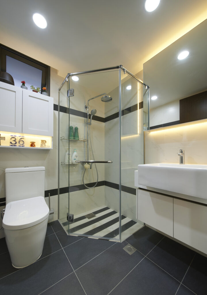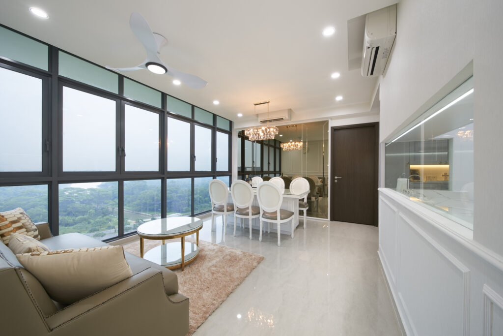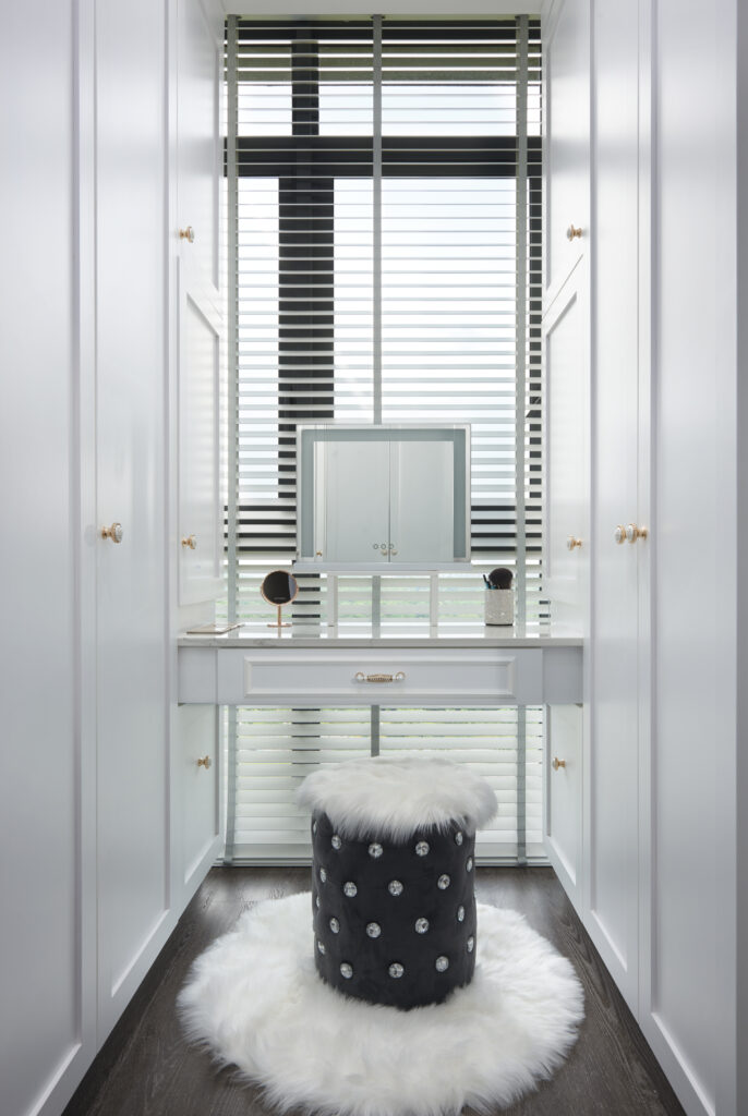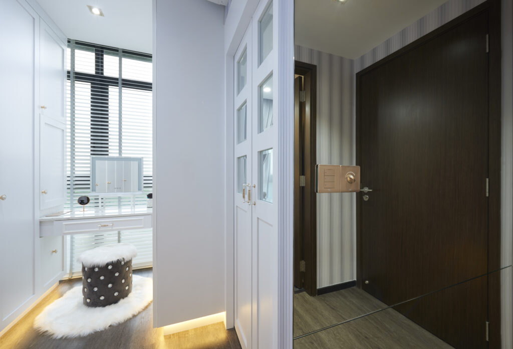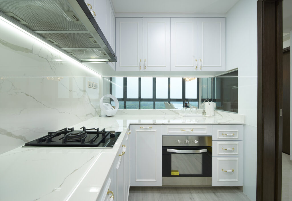 White dominates the colour scheme and creates an illusion of a larger space, turning the small home into a luxurious haven. All the cabinets are creatively customised to reach the ceiling, creating many clean vertical lines that lift the eye and mind, creating a state-of-the-art home.