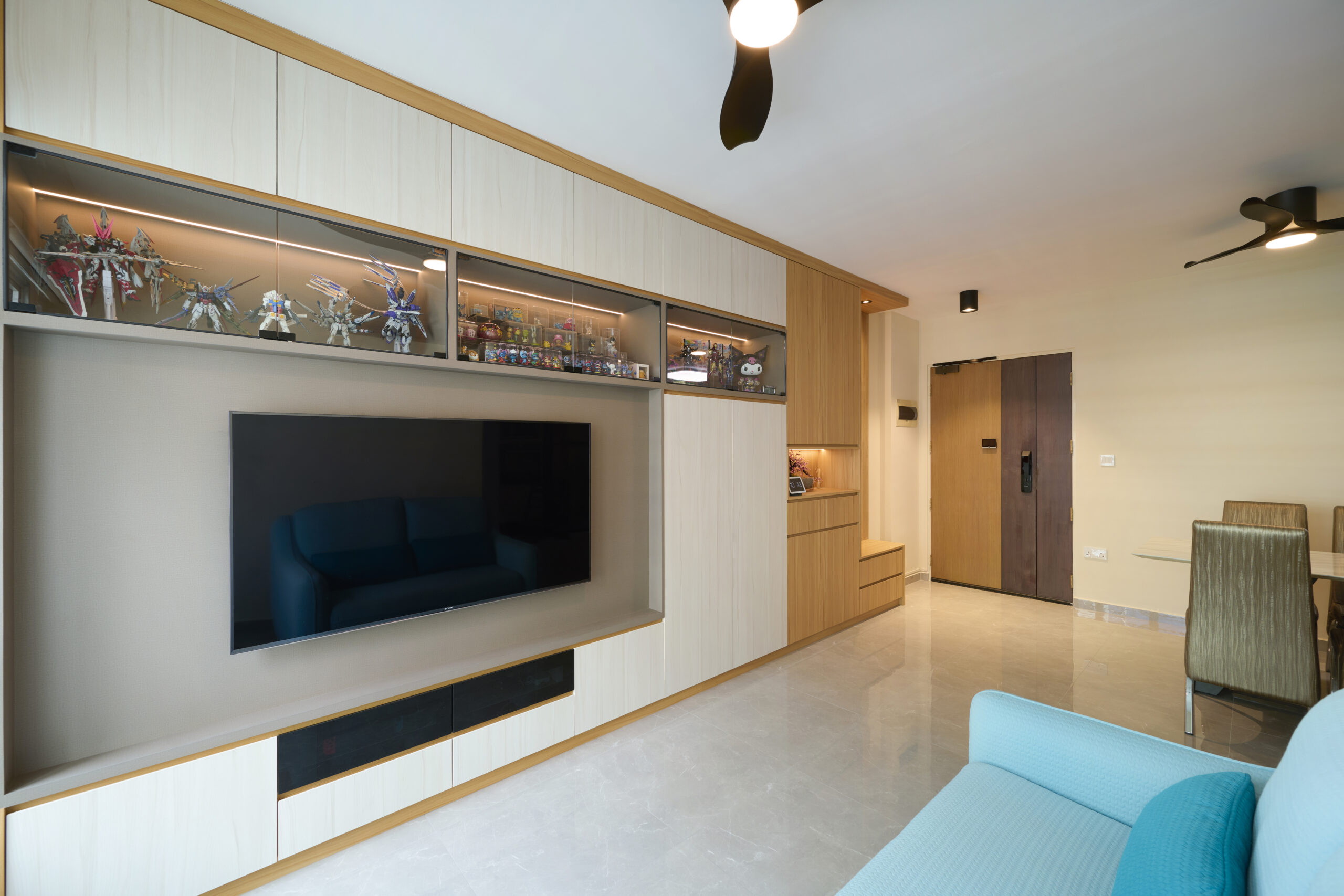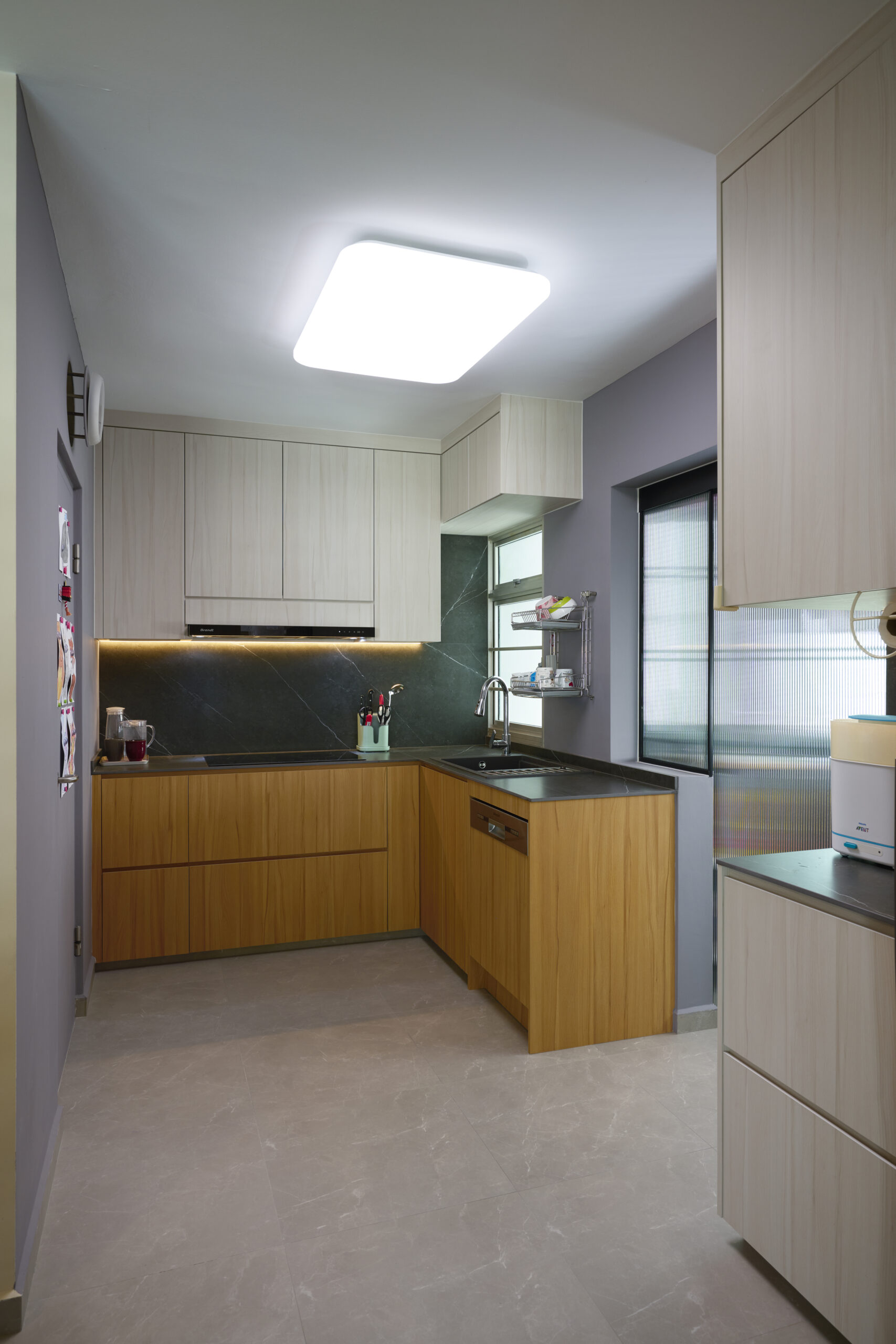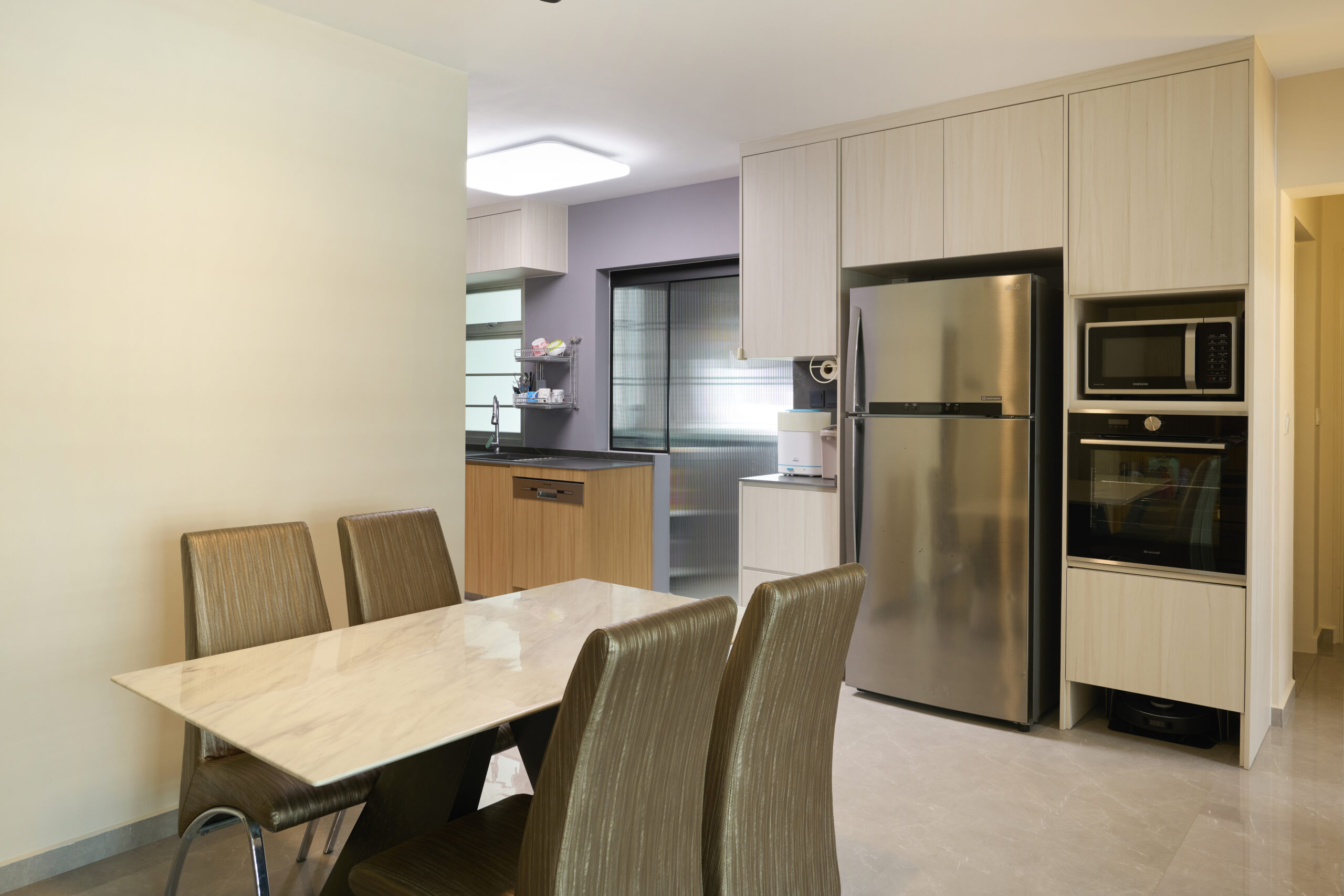 The heart of this residence is undoubtedly the living area, which unfurls in a symphony of soft hues and sophisticated lines, echoing a contemporary yet comfortable lifestyle. The juxtaposition of sleek, modern appliances and warm wooden textures in the kitchen strikes a balance between functionality and style, making it a culinary retreat for the senses.