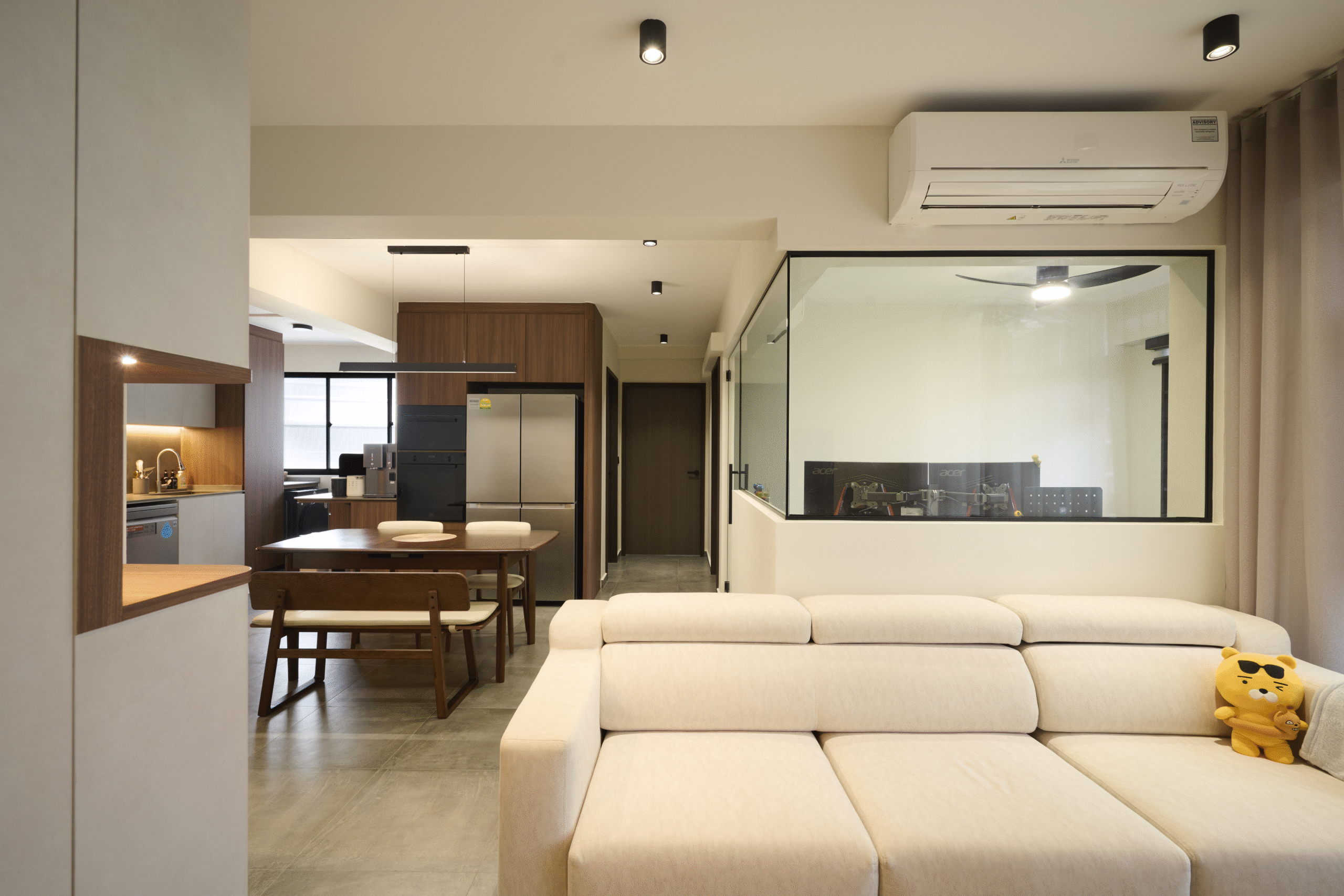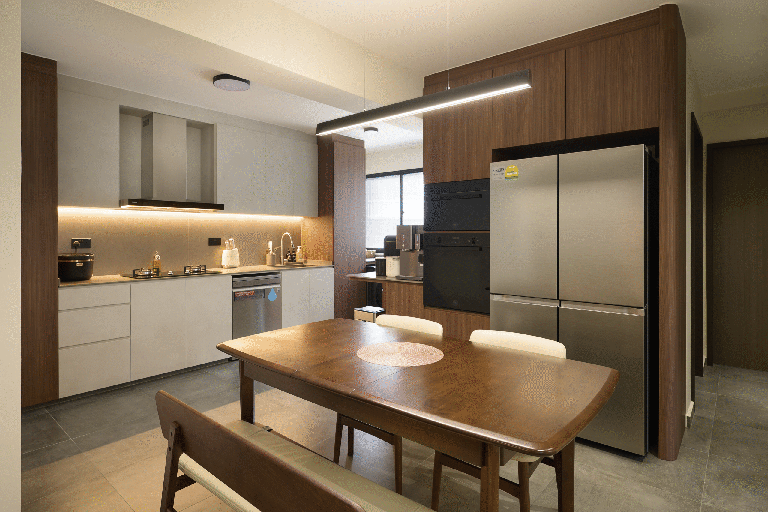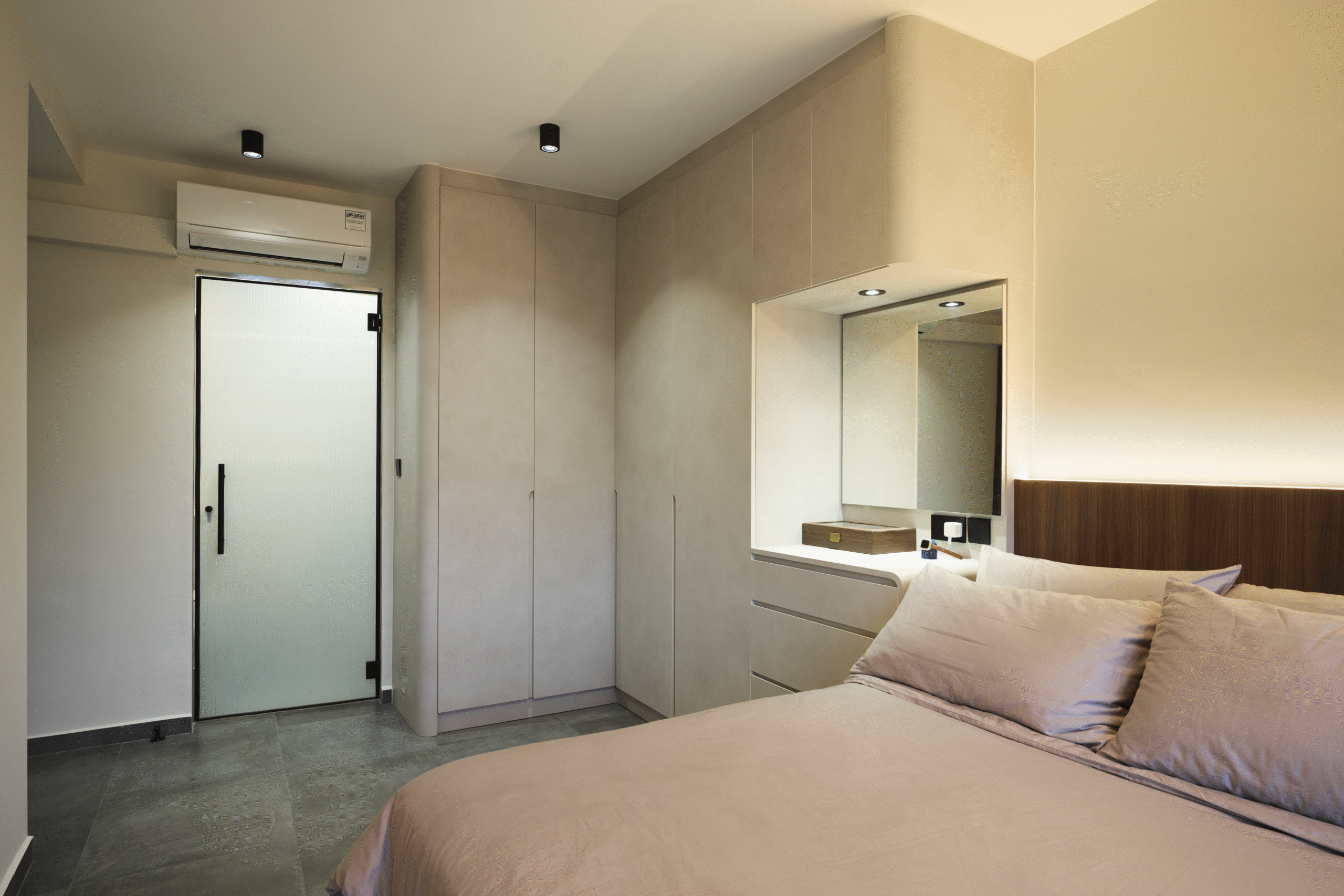 Clean wooden décor with curves and well-positioned lightings given this home a warm feel that truly shines.