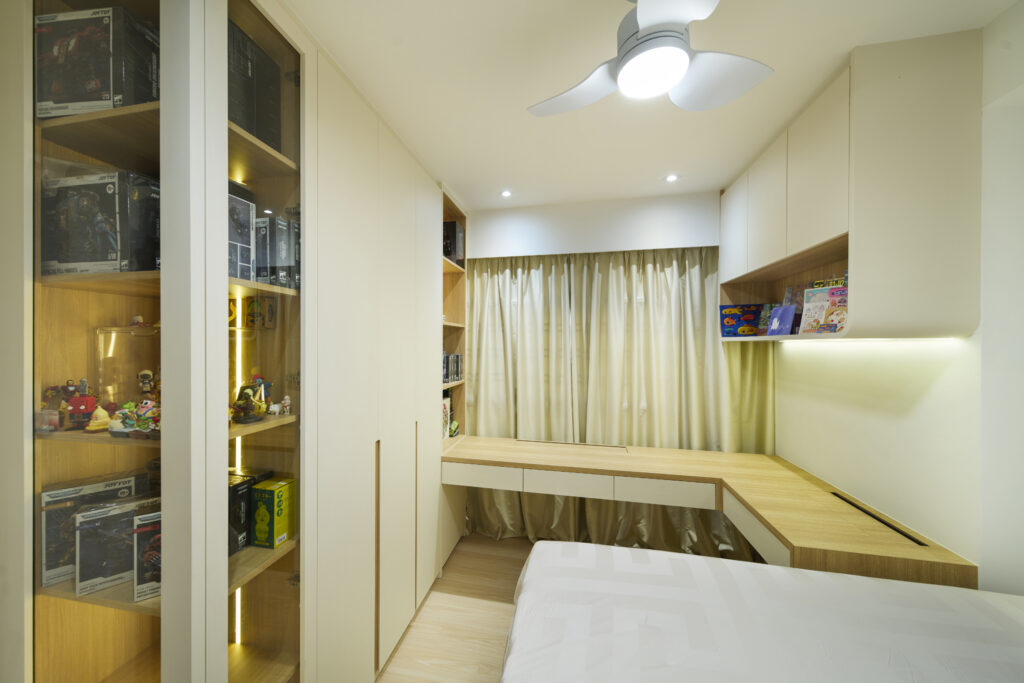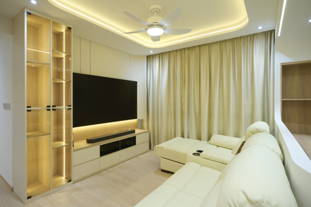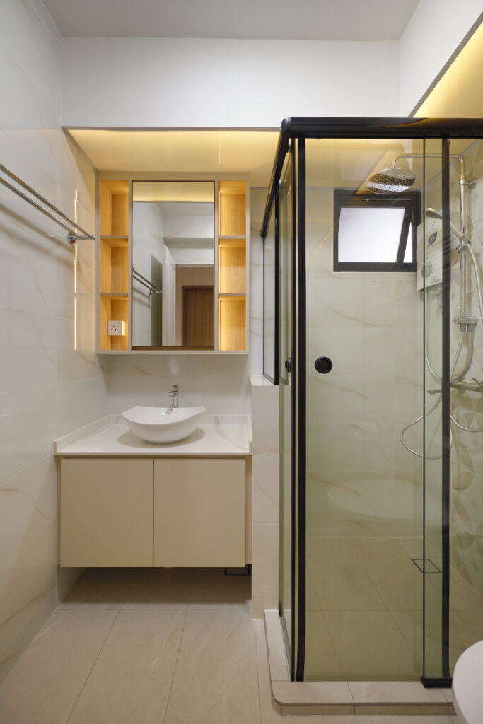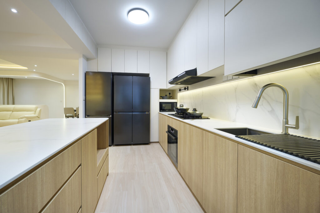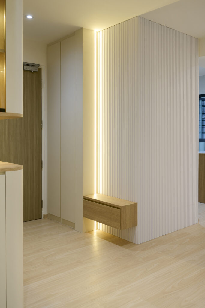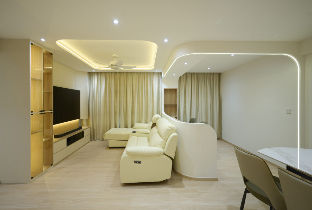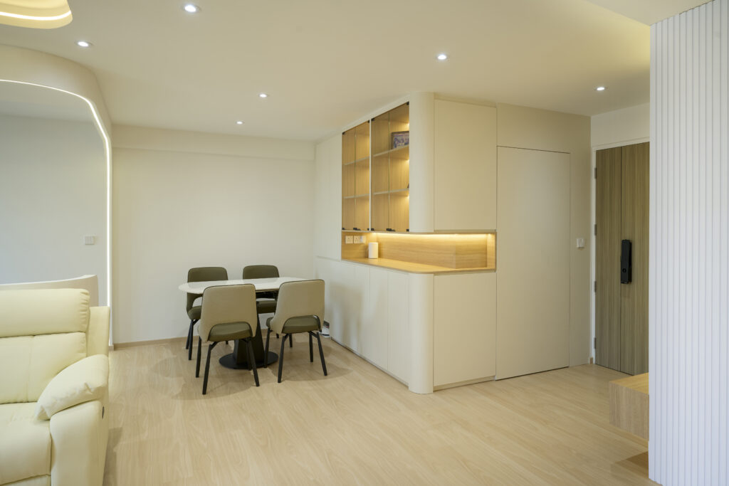 Clean wooden décor with curves and well-positioned lightings given this home a warm feel that truly shines.