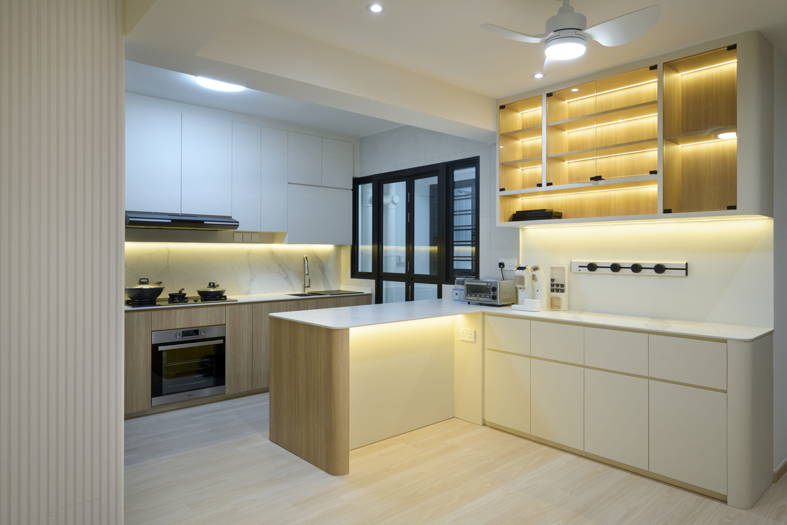Clean wooden décor with curves and well-positioned lightings given this home a warm feel that truly shines.